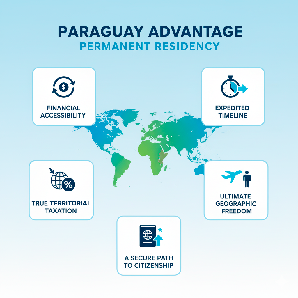 Embora programas no Panamá, Uruguai ou México apresentem complexidades crescentes e custos elevados, o Paraguai oferece a via mais direta e acessível para garantir o seu futuro nas Américas.